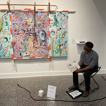 This performance, "Transactions & Provocations," explored the transactions inherent in viewing and displaying art. What non-monetary kinds of transactions are possible in an art space? What if you had to give a piece of art in order to receive one? We explored these questions during a site-specific, audience-participatory experience, where patrons were asked to write poetry, draw pictures, and create song titles in exchange for tokens that could be used to activate performances throughout the galleries. The transactions became even more complicated when we incorporated audience-made art into our performance and began reciting their poetry and singing their songs. The show culminated in a large interactive sculpture made of all of the art and writing that had been created during the show, and audience members were invited to take their (or another's) artwork home with them.